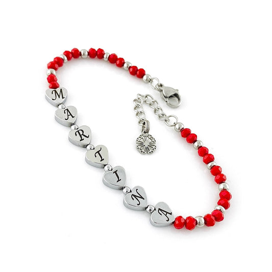 Bracciale Cristallo con Nome Inciso su Cuore di Ematite